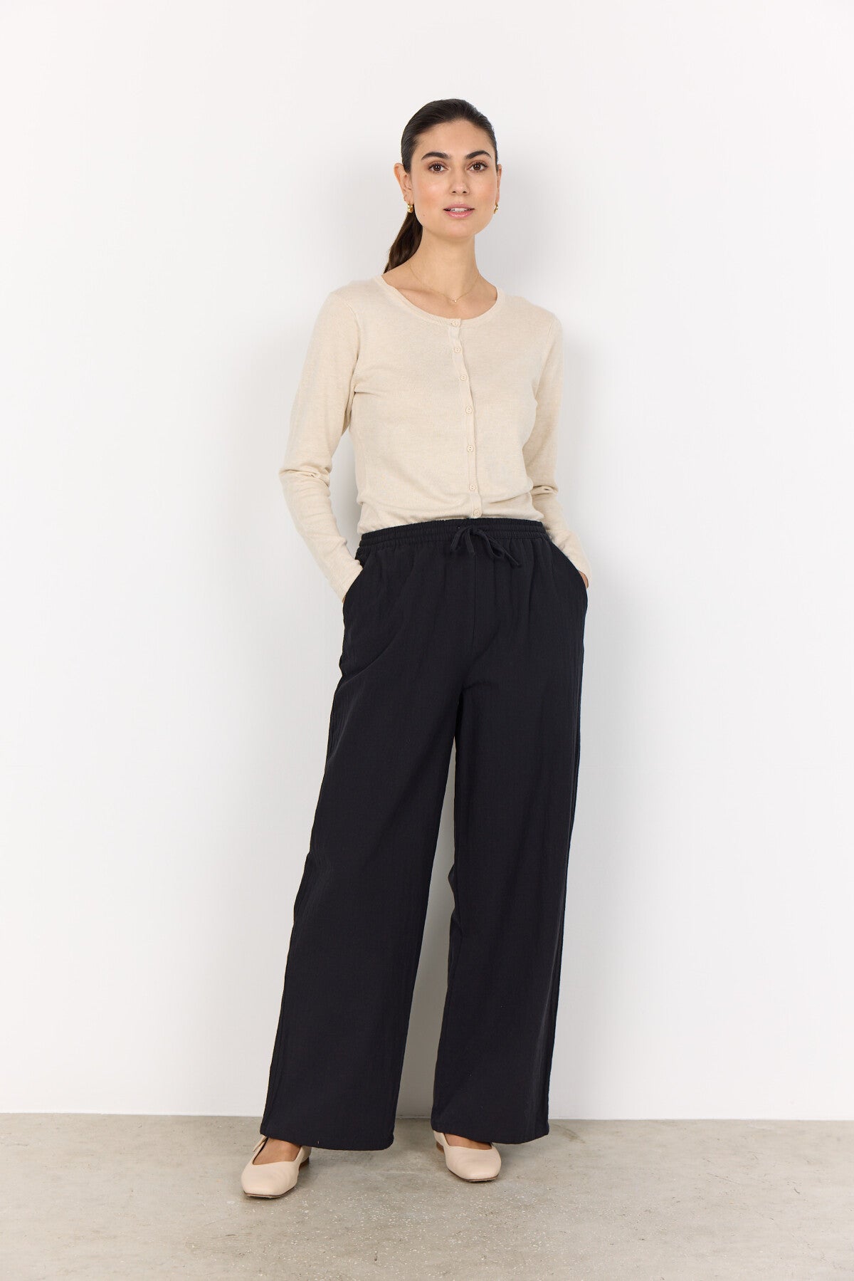 - Our model measures 176 cm and uses size Medium