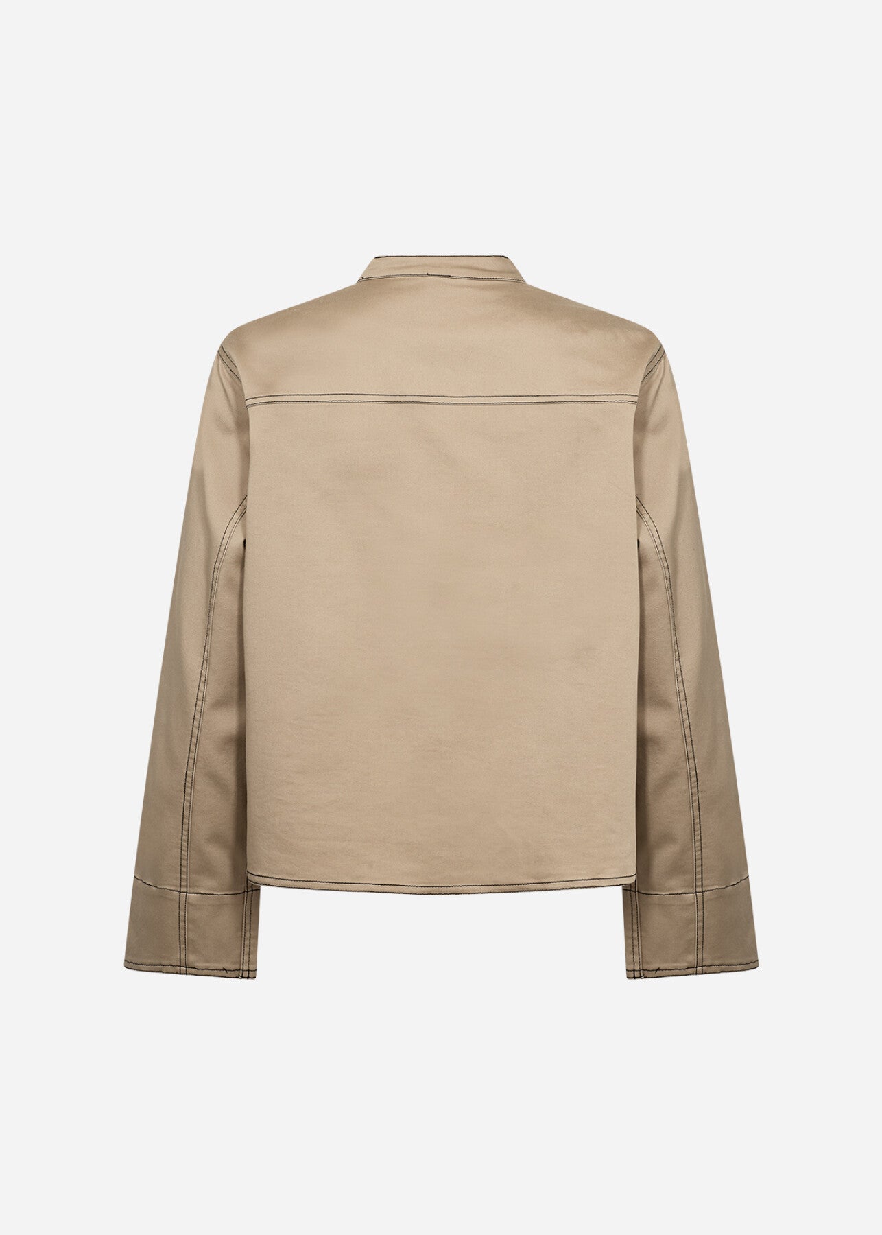 SC-AKILA 29 is a jacket made with 65% Cotton, 33% Polyester, and 2% Elastane. It has a mandarin collar, button-front closure, and two front pockets with prominent stitching details. This jacket pairs elegantly with tailored trousers or casual denim for a versatile look.
