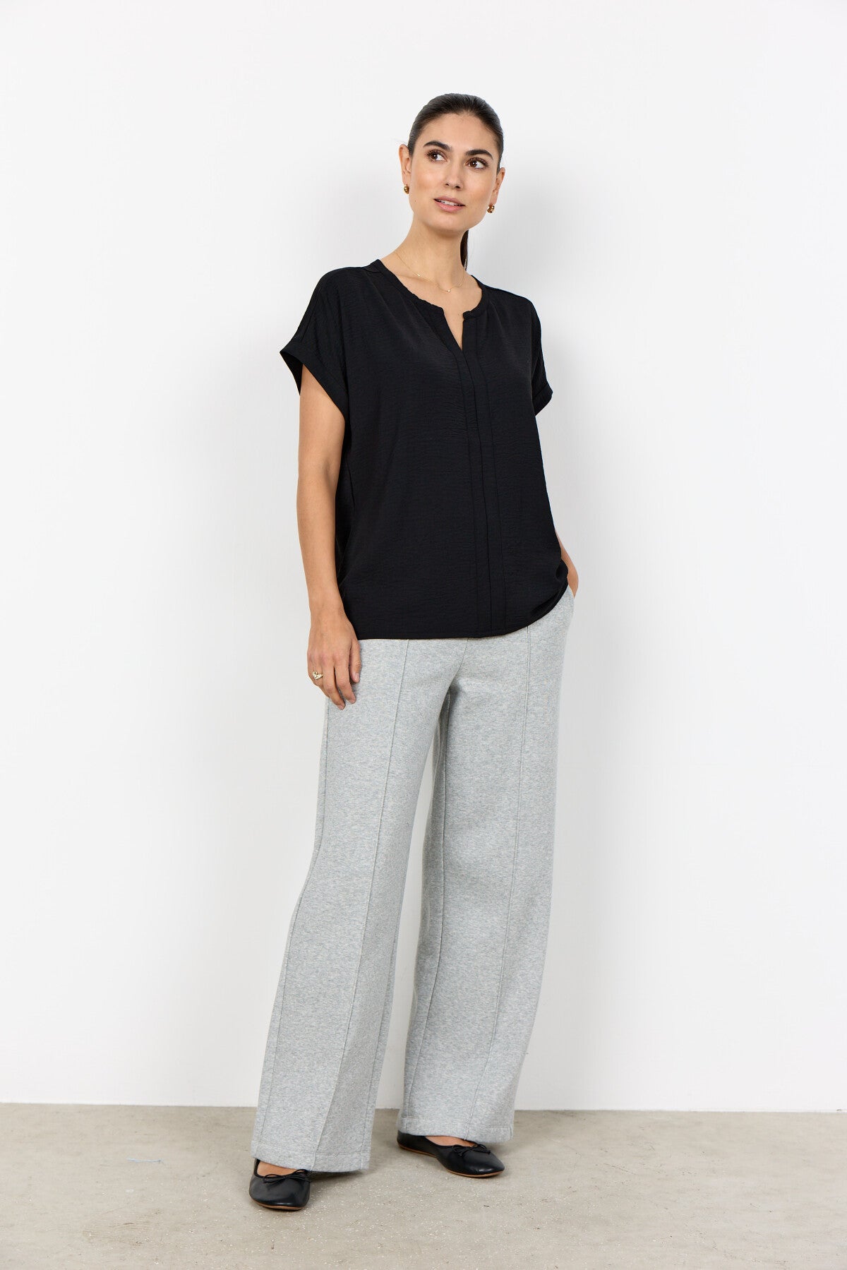 - Our model measures 176 cm and uses size Medium